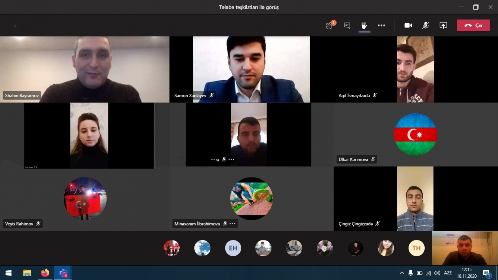 Həm müharibə, həm də COVID-19-la mübarizə şəraitində informasiya cəbhəsində göstərmiş olduqları həmrəyliyə və fəallığa görə tələbələrə təşəkkürünü bildirən rektor gələcəkdə bu istiqamətdə fəaliyyətlərin daha da genişləndirilməsinin vacibliyini nəzərə çatdırıb. Cəbhə bölgəsində yaşayan, döyüşlərdə iştirak edən, təhsil prosesində, könüllülük tədbirlərində və universitetin ictimai həyatında fəallığı ilə seçilən tələbələrə xüsusi diqqət və qayğı göstərilməsinin zəruriliyini qeyd edən Ş.Bayramov tələbə təşkilatlarının rəhbərlərinə bununla əlaqədar müvafiq tövsiyələrini bildirib.