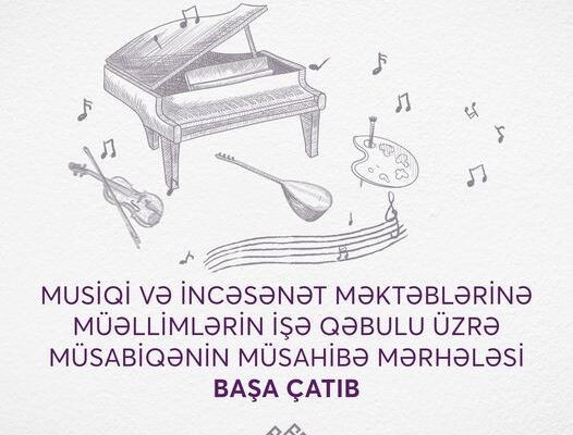 Avqustun 8-də musiqi və incəsənət məktəblərinə müəllimlərin işə qəbulu üzrə müsabiqənin müsahibə mərhələsi başa çatıb. Müxtəlif ixtisaslar üzrə keçirilən imtahanlarda ümumilikdə 286 nəfər namizəd iştirak edib.