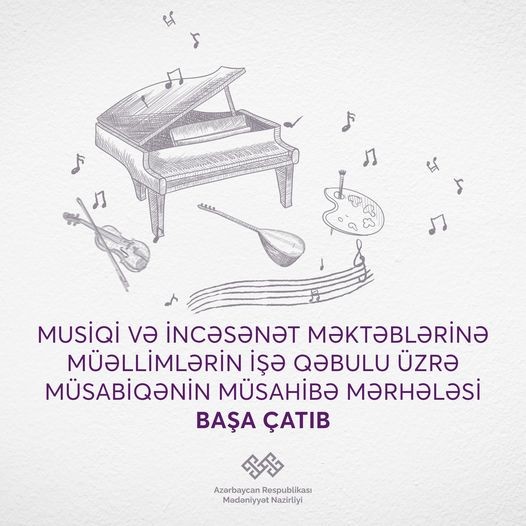 Qeyd edək ki, müsabiqənin nəticələri barədə məlumat yaxın günlərdə namizədlərin “MyCulture” vahid şəxsi kabinetinə (my.culture.az) göndəriləcək. Namizədlərin vakant yerlərə yerləşdirilməsi elektron ərizələrində qeyd etdikləri seçim ardıcıllığı gözlənilməklə aparılacaq.