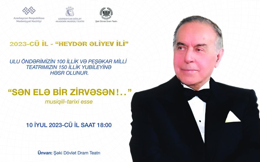 10 iyul saat 18:00-da Azərbaycan Dövlət Akademik Musiqili Teatrı Şəki Dövlət Dram Teatrında Ulu öndər Heydər Əliyevin 100 illik, peşəkar milli teatrımızın 150 illik yubileyi ilə əlaqədar “Sən elə bir zirvəsən!..” tamaşası ilə çıxış edəcək.