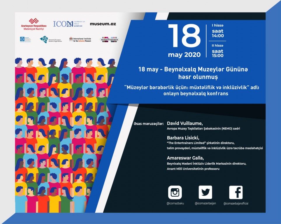 Mayın 18-də Mədəniyyət Nazirliyi və ICOM Azərbaycan Milli Komitəsinin təşkilatçılığı ilə Beynəlxalq Muzeylər Gününə həsr olunmuş “Muzeylər bərabərlik üçün: müxtəliflik və inklüzivlik” adlı onlayn beynəlxalq konfrans keçiriləcək.
