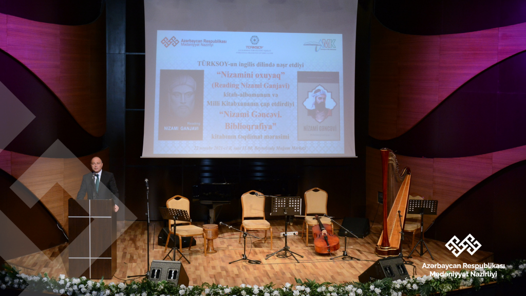 Noyabrın 22-də Beynəlxalq Muğam Mərkəzində TÜRKSOY-un nəşr etdiyi “Nizamini oxuyaq” (“Reading Nizami Ganjavi”) və Azərbaycan Milli Kitabxanasının nəşr etdiyi “Nizami Gəncəvi. Biblioqrafiya” kitablarının təqdimat mərasimi keçirildi.