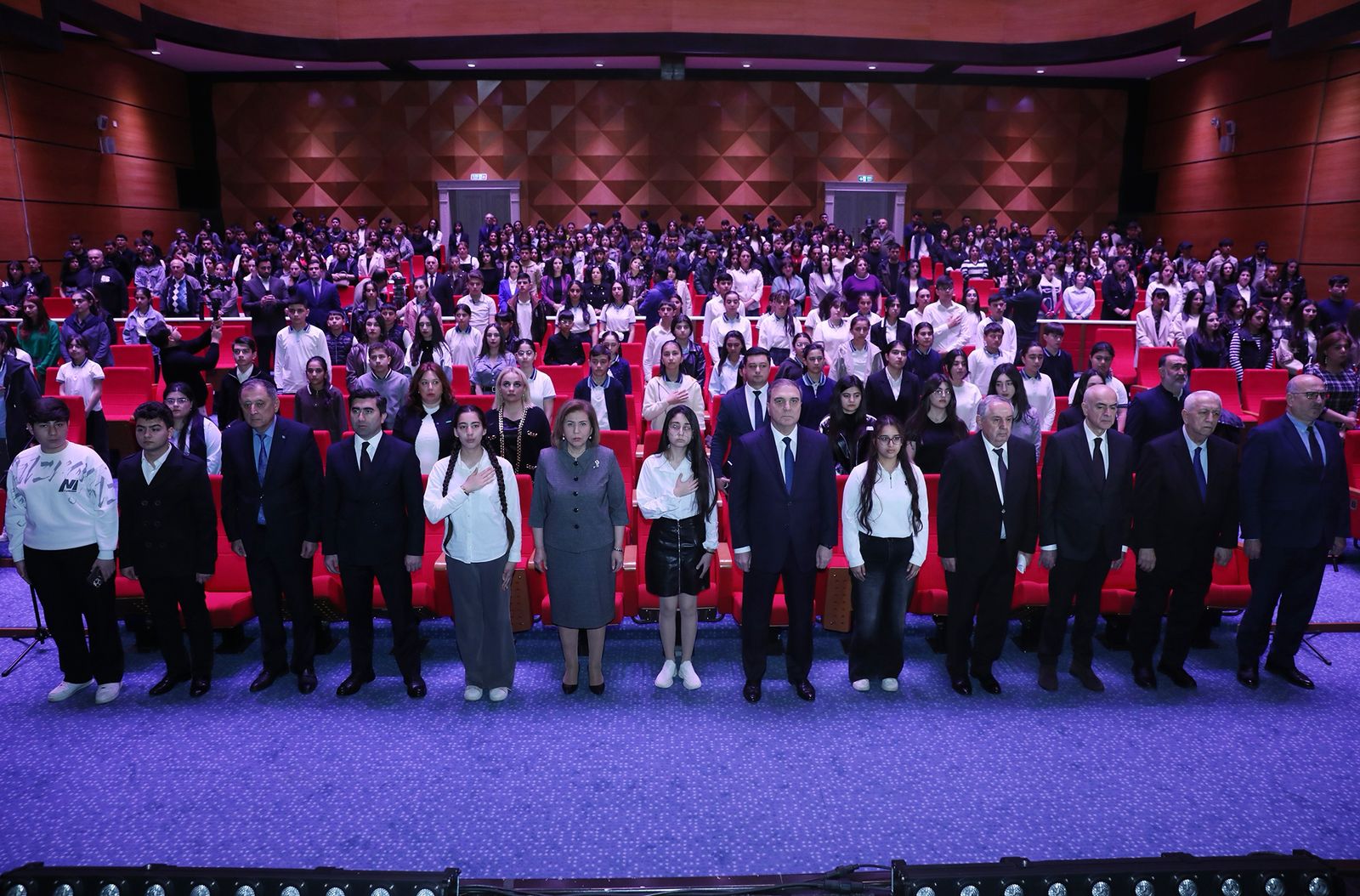 Gəncə Dövlət Milli Dram Teatrında keçirilən görüşdə Gəncə Şəhər İcra Hakimiyyətinin başçısı Niyazi Bayramov, Ailə, Qadın və Uşaq Problemləri üzrə Dövlət Komitəsinin sədri Bahar Muradova, YAP Gəncə şəhər təşkilatının sədri Bayram Aslanov, Azərbaycan Milli Elmlər Akademiyasının akademik-katibi, “Azərenerji” Açıq Səhmdar Cəmiyyəti Azərbaycan Elmi-Tədqiqat və Layihə-Axtarış Energetika İnstitutunun direktoru Arif Həşimov, Azərbaycan Milli Elmlər Akademiyasının Gəncə Bölməsinin sədri, akademik Fuad Əliyev, Əməkdar incəsənət xadimi, Azərbaycan Kinematoqrafçılar İttifaqının katibi Baba Vəziroğlu, Gəncə Tibb Kollecinin direktoru, Əməkdar həkim Mehman Rzayev, Gəncə Dövlət Milli Dram Teatrının direktoru Ədalət Hacıyev, Uşaq Səfirlər Məclisinin üzvləri, mədəniyyət işçiləri və şəhərdə fəaliyyət göstərən ali təhsil müəssisələrinin tələbələri iştirak ediblər.