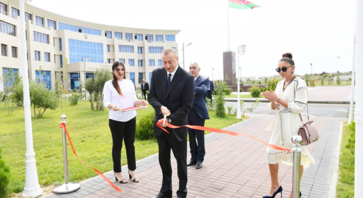 Dövlətimizin başçısı İlham Əliyev binanın rəmzi açılışını bildirən lenti kəsdi.