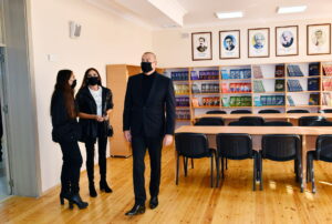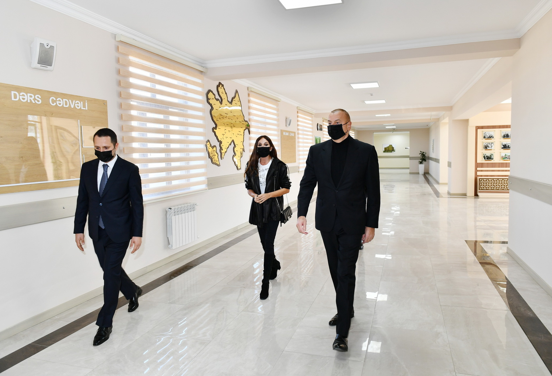 Dövlətimizin başçısı, birinci xanım və qızları yeni məktəbin sinif otaqlarını, fənn kabinetlərini gəzdilər.