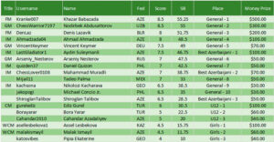 Turnirin əsasnaməsinə uyğun olaraq “Ən yaxşı azərbaycanlı oyunçu” nominasiyasında I yerin sahibi (ümumi hesabda VI) Aydın Süleymanlı, II yerin sahibi (ümumi hesabda IX) Məhəmməd Muradlı, III yerin sahibi (ümumi hesabda XV) Şiroğlan Talıbov olub. 12 yaşadək şahmatçılar arasında Türkiyə təmsilçiləri Ediz Gürəl I, Bora Yarar II, həmyerlimiz Cahandar Azadəliyev III yeri tutub. Qızlar arasında Qazaxıstan təmsilçisi Assel Lezbekova I yerə, həmyerlimiz Mələk İsmayıl II yerə, Gürcüstan şahmatçısı Pipiya Yekaterina III yerə layiq görülüb.