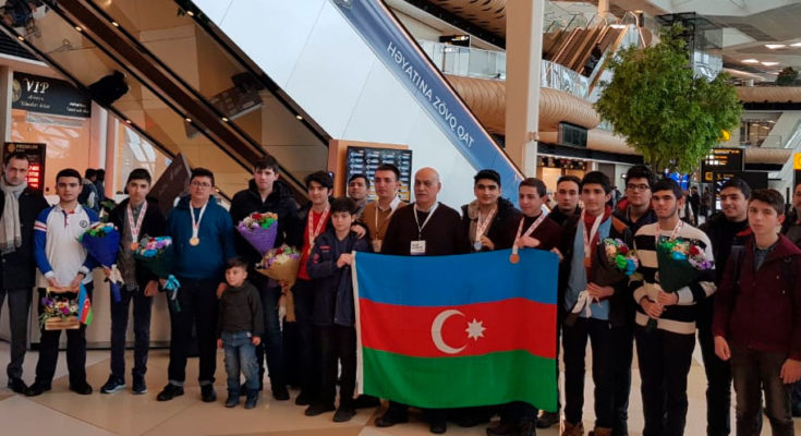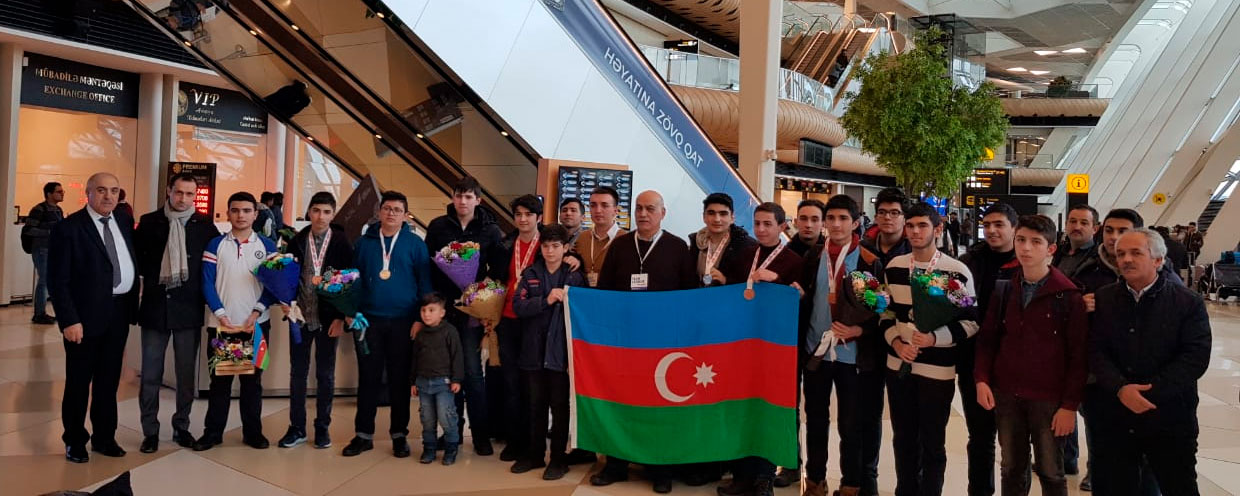 Qazaxıstanda uğur qazanan məktəblilər Vətənə qayıdıblar
