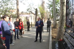 Gəncə Şəhər İcra Hakimiyyətinin başçısı Niyazi Bayramov qonaqlara erməni terroru barədə məlumat verib. O bildirib ki, Vətən müharibəsi zamanı açıq hərbi əməliyyatlarda ardıcıl məğlubiyyətə uğrayan Ermənistan Azərbaycan Silahlı Qüvvələrinin uğurlu hücum əməliyyatlarının qarşısını almaq, bu hücumları dayandırmaq, xalq arasında qorxu və vahimə yaratmaq məqsədilə dinc insanların məskunlaşdığı yaşayış məntəqələrini qadağan edilmiş raketlərdən atəşə tutub, mülki vətəndaşlarımız arasında böyük tələfatlara nail olmağa çalışıb.