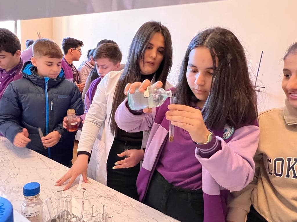 Kimya müəllimi Çinarə Cəfərova və qrup rəhbərlərinin iştirakı ilə təşkil olunan səfərdə şagirdlər biliklərini təkmilləşdirərək, real müşahidələr və təcrübələr aparıblar. Təcrübə əsasında duzların qələvi məhlullar ilə əmələ gətirdiyi çöküntüləri müşahidə ediblər.