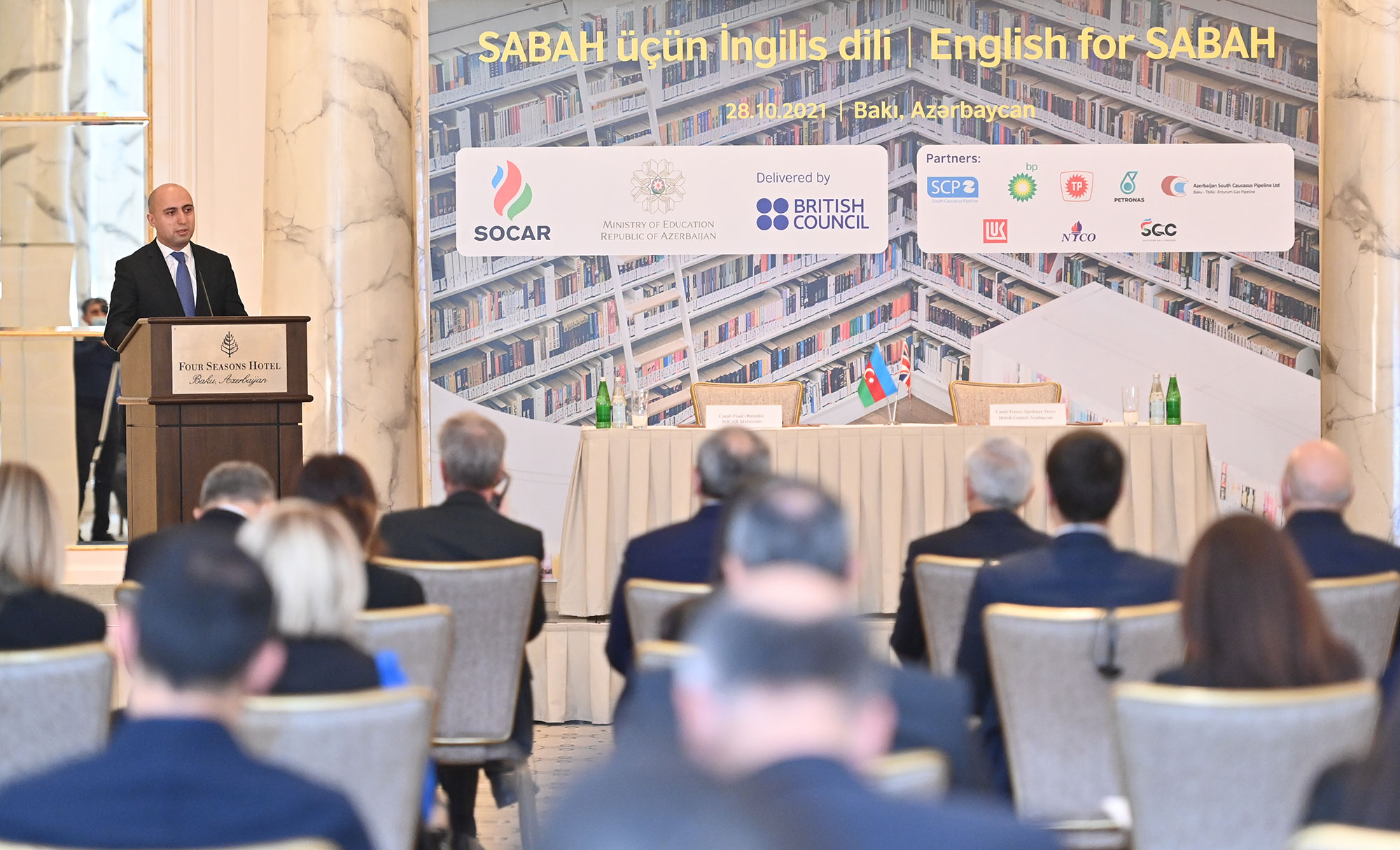 Oktyabrın 28-də SOCAR və onun Cənubi Qafqaz Boru Kəməri (CQBK) şirkətindəki tərəfdaşları ilə “British Council” arasında “SABAH Magistratura qruplarında təhsil alan tələbələrin ingilis dili bacarıqlarının təkmilləşdirilməsi” layihəsinin maliyyələşdirilməsinə dair imzalanma mərasimi keçirilib.