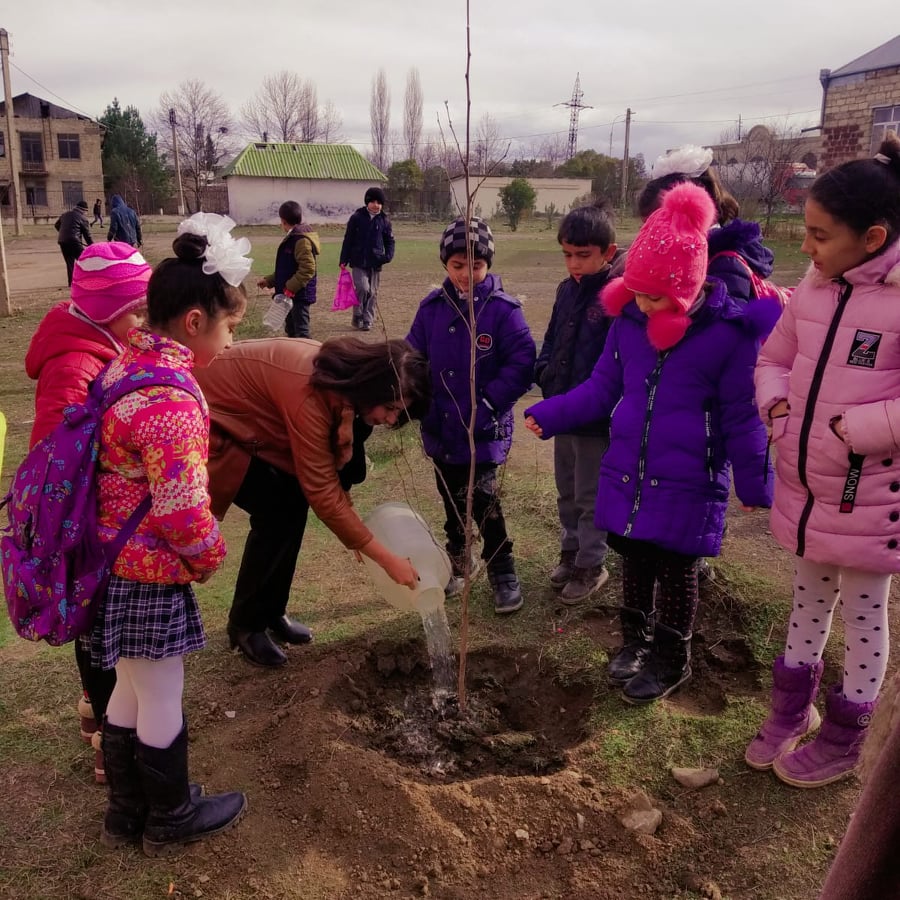 Mən şagirdlərimə Vətən torpağını sevdirmək üçün əlimdən gələni etməyə çalışıram. Bunun üçün birinci vətənimin təbiətini qorumağı və sevməyi öyrətməyə çalışıram. Odur ki, şagirdlərimlə birlikdə məktəbimizin həyətində ağac əkmək qərarına gəldim. Bu işdə mənə Ekologiya və Təbii Sərvətlər Nazirliyinin mətbuat katibi İradə İbrahimova dəstək oldu. O, bizi ağaclarla təmin etdi. Biz 21.11.2018 tarixində sagirdlərimizlə birlikdə məktəbimizin həyətində 100 şam və 20 çinar ağacı əkdik. Bu ağacların suvarılmasında çox əziyyət çəksək də öhdəsindən gəlməyə çalışırıq. Belə ki, şagirdlərimiz tez-tez ağaclara baş çəkirlər, onların böyüməsi üçün əllərindən gələni əsirgəmirlər.