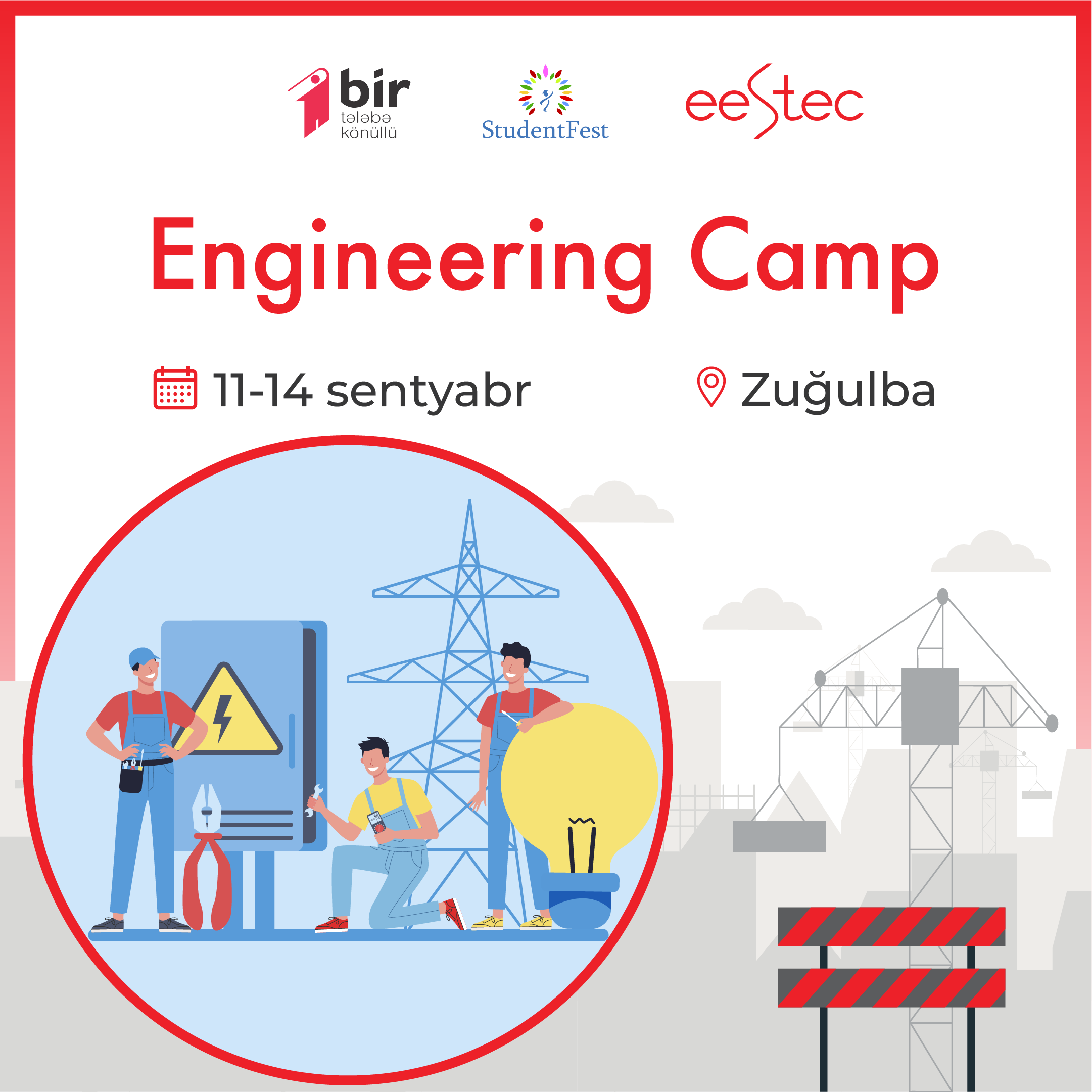 11-14 sentyabr tarixlərində “Zuğulba” tədris-idman bazasında “Bir Könüllü” Tələbə Təşkilatı və Avropa Elektrik Mühəndisliyi Tələbələri Assosiasiyasının yerli bölməsi “EESTEC Observer Baku”nun əməkdaşlığı ilə mühəndislik düşərgəsi təşkil ediləcək.