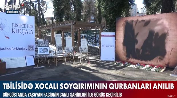Anım mərasimi zamanı Tbilisidəki Azərbaycan Səfirliyinin binası yaxınlığında yerləşdirilən monitorda faciəni əks etdirən foto və video materiallar nümayiş etdirilib.
