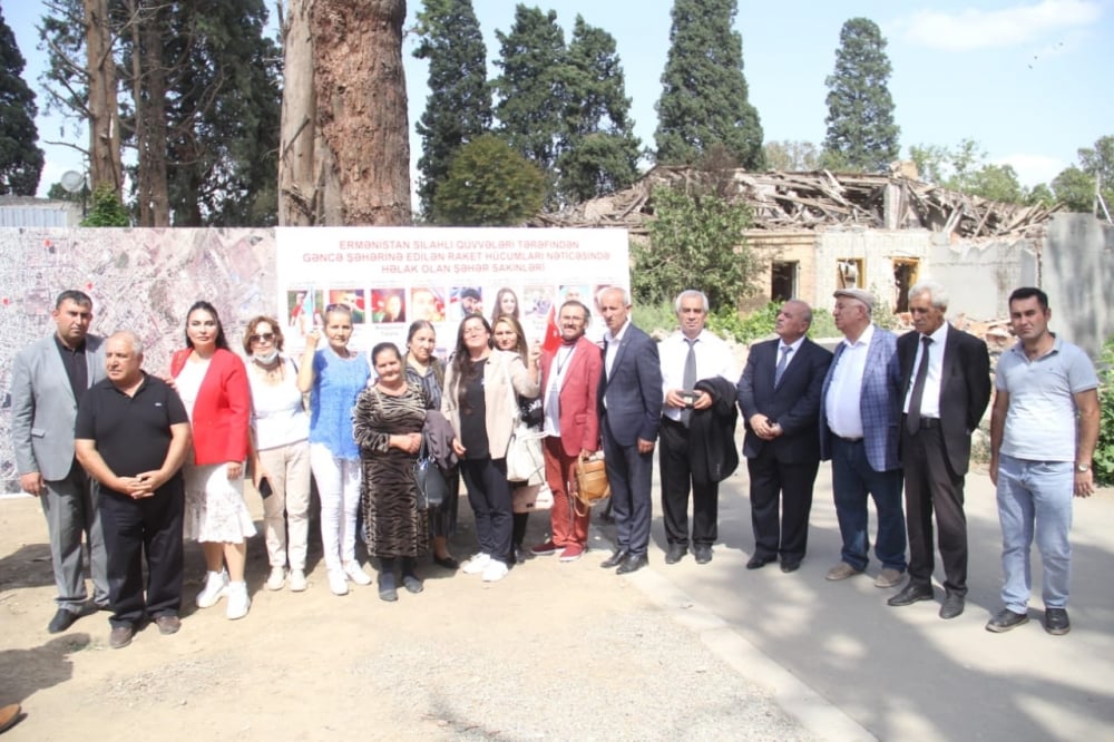 Sonra qonaqlar ötən ilin oktyabrında Gəncədə erməni terroru nəticəsində çoxlu sayda mülki şəxsin öldüyü, yaralandığı və böyük dağıntıların yarandığı əraziyə gəliblər. Məlumat verilib ki, işğalçı Ermənistanın silahlı qüvvələri 44 günlük Vətən müharibəsində beynəlxalq hüququn norma və prinsiplərini, 1949-cu il Cenevrə konvensiyalarını və onların Əlavə protokollarını, habelə özlərinin israrlı xahişləri əsasında Moskvada keçirilmiş görüşün yekunu olaraq razılaşdırılmış humanitar atəşkəs rejiminin tələblərini pozaraq Azərbaycanın dinc əhalisini qəsdən hədəfə almaqla cəbhə xəttindən xeyli aralıda yerləşən yaşayış məntəqələrini ağır artilleriyadan atəşə tutub.