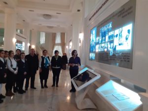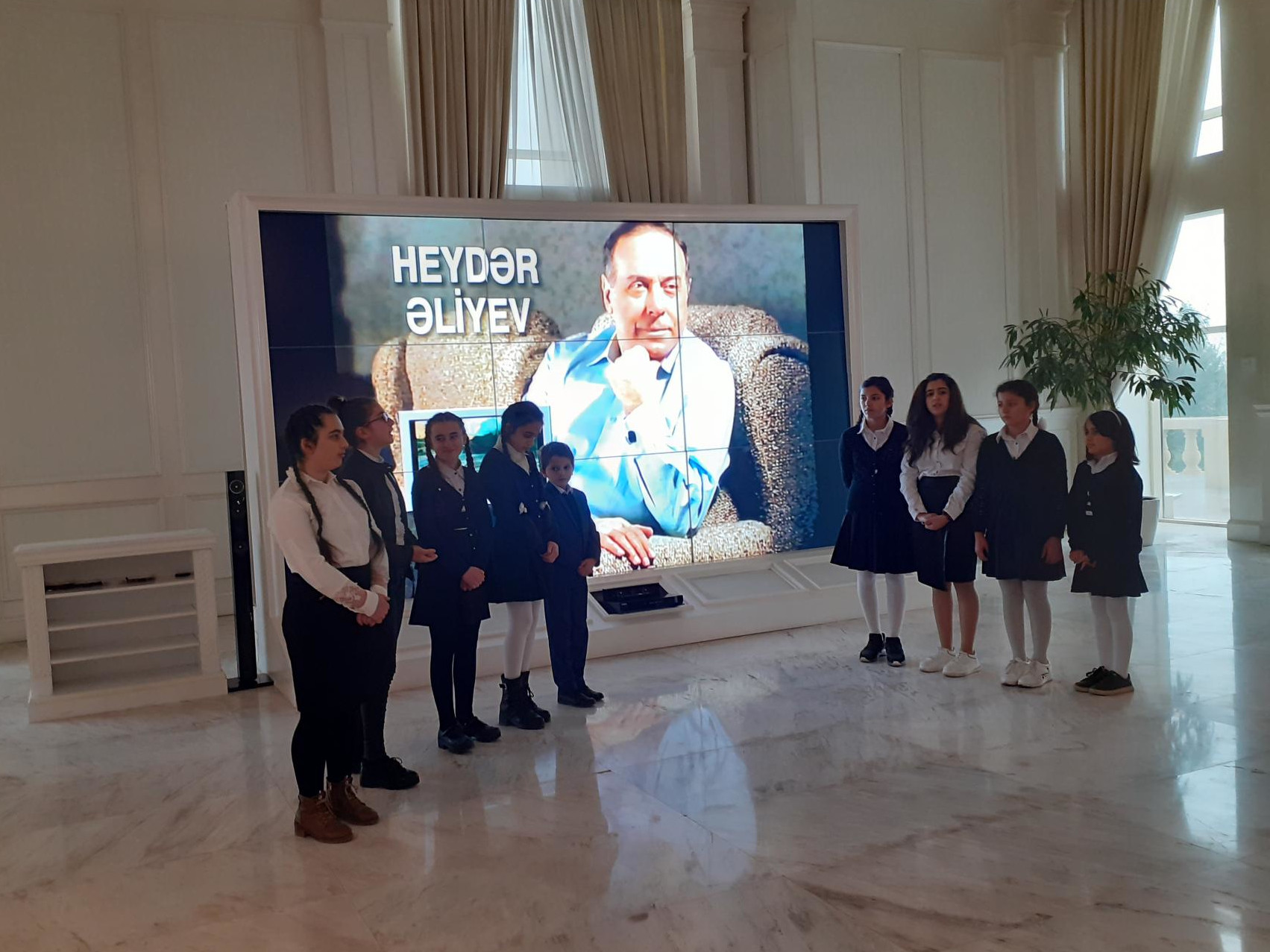 Mərkəzin bələdçiləri Sevinc Əhmədova və Könül Süleymanova qonaqlara Ulu Öndər Heydər Əliyevin zəngin həyat yolunu və çoxşaxəli fəaliyyətini əks etdirən eksponatlar haqqında geniş məlumat verdilər.