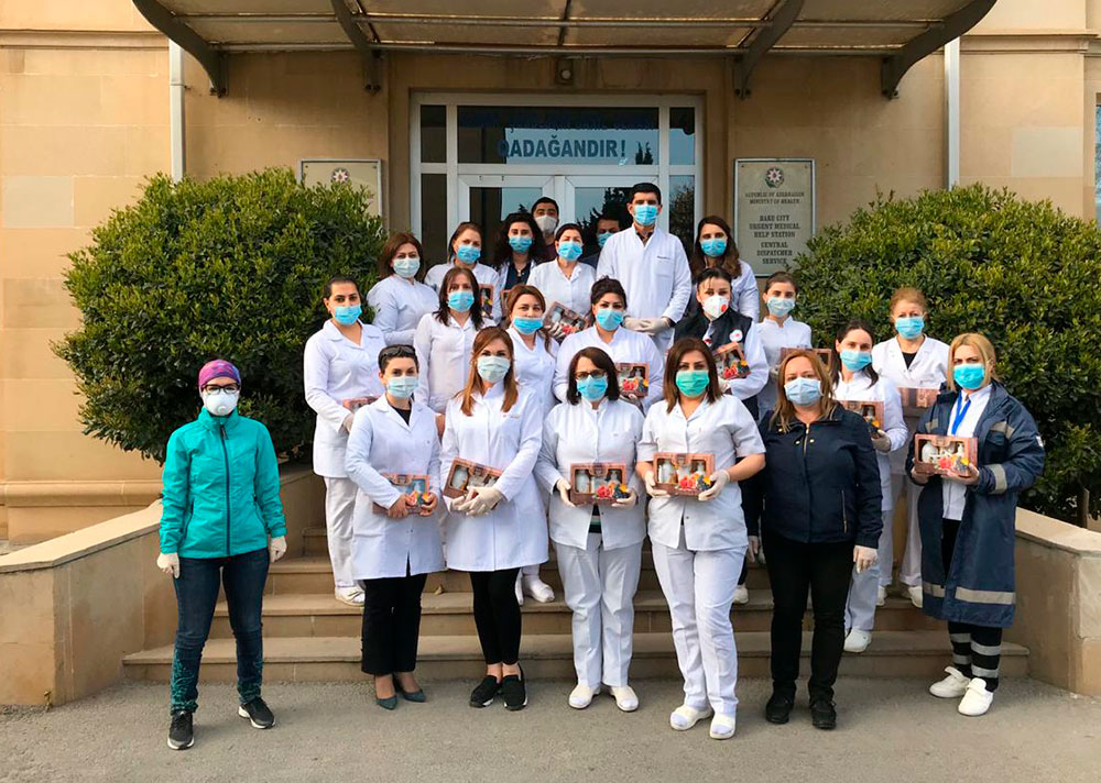Bakı şəhəri Səbail rayonu 3 saylı Təcili Yardım Stansiyası, 2 saylı poliklinika və Təcili Təxirəsalınmaz Tibbi Yardım Stansiyasının həkim heyəti və tibb bacıları daxil olmaqla, ümumilikdə 130 tibb işçisinə koronavirus infeksiyasından qorunmaq və sağlamlığın müdafiəsi məqsədilə gigiyenik vasitələrdən ibarət dəstlər təqdim edilib.