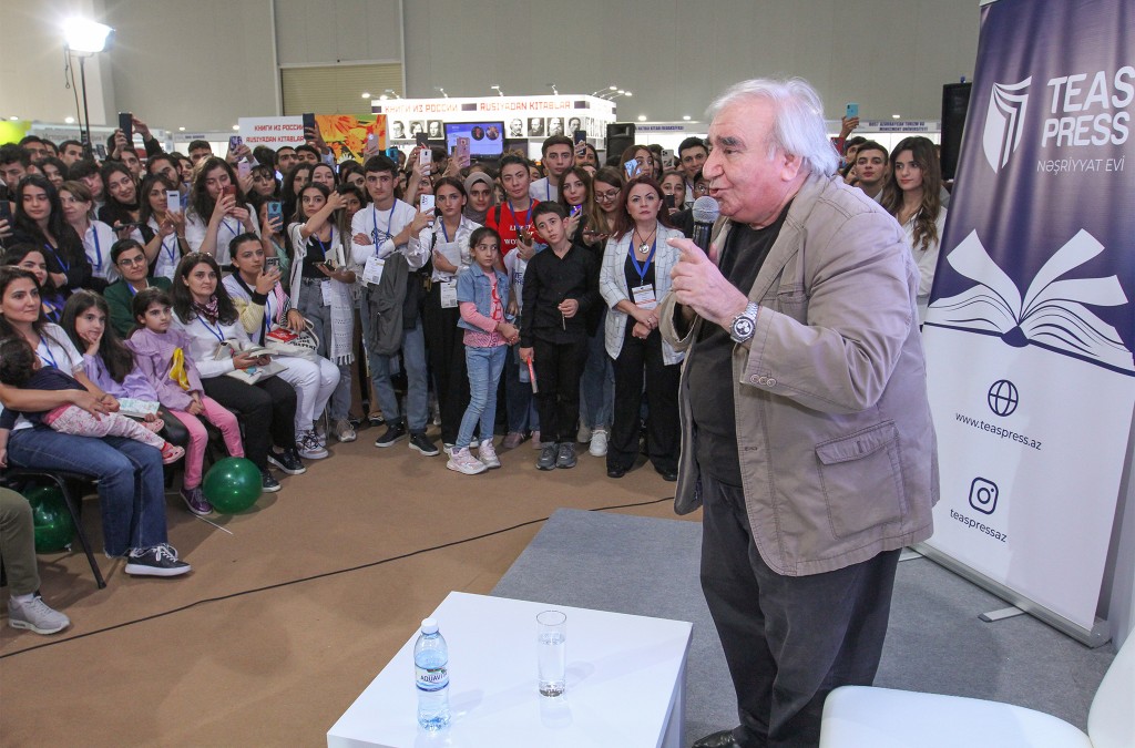 Bakı Ekspo Mərkəzində VIII Bakı Beynəlxalq Kitab Sərgisinin Xurşidbanu Natəvan təqdimat zalında Xalq şairi Ramiz Rövşənlə görüş və imza saatı keçirilib.