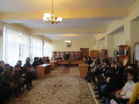 Bu gün Gəncə şəhər Mərkəzi kitabxananın Oxu zalında Xocalı Soyqırımı ilə əlaqədar “Xocalı qisas çağırışı, fəryad səsidir” başlığı altında ədəbi-bədii kompozisiya keçirildi. Tədbirdə GDU-nin Tarix kafedrasının dosenti Hüseyin Bəxtiyarov, kitabxananın fəal oxucusu jurnalist İmamverdi Vəliyev, GDU və ADAU-nun tələbələri, 4,5 və 6 saylı, Göygöl rayon Qızılca kənd Raquf Rzayev adına orta məktəb şagirdləri, kitabxananın oxucuları iştirak edirdi. Soyqırım qurbanlarının əziz xatirəsi bir dəqiqəlik sükutla yad edildi. Tədbiri giriş sözü ilə açan və bizi 27 il zaman məsafəsinin ayırmağına baxmayaraq (bu da bir çəkilməz dərddir),amansızlığına, qəddarlığına görə analoqu olmayan, bəşər tarixinə qanlı iz salmış, təkcə Azərbaycan xalqına deyil, bütün insanlığa qarşı yönəlmiş, yaddaşımızın qan sızlayan, ağrısı kəsilmək bilməyən Xocalı soyqırımı haqqında , o məşum günlərdən danışan ,MKS-nin direktor müavini Fəridə Qədimova sözü GDU-nun tarix kafedrasının dosenti Hüseyn Bəxtiyarova verdi. Hüseyn müəllim oxuculara Xocalı soyqırımı haqqında geniş məlumat verdi. Hüseyn müəllim də, İmamverdi müəllim də yeniyetmə və gənc oxuculara düşmənə qarşı barışmaz, cəsarətli və qorxmaz olmağı, heç zaman unutqan olmamağı tövsiyə etdilər. Eyni zaman da vurğuladılar ki, erməni millətçilərinin tarix boyu xalqımıza qarşı həyata keçirdikləri məkrli siyasət, o cümlədən Xocalı soyıqımı barəsində gənc nəslə, əsgərlərə ətraflı məlumat verilməli, düşmənin kimliyi tanıdılmalıdır. Şagirdlər mövzuya, vətənə,vətənpərvərliyə, qəhrəmanlığa dair şeirlər “Xocalı qırğını, Xocalı hüznü” başlığı altında ədəbi- bədii kompozisiyalar nümayiş etdirildi.