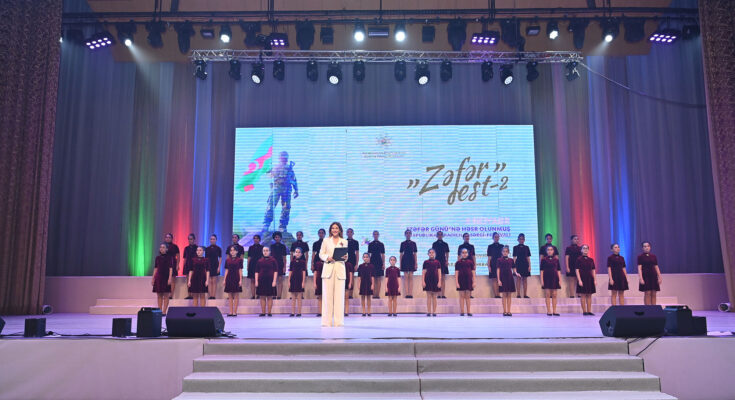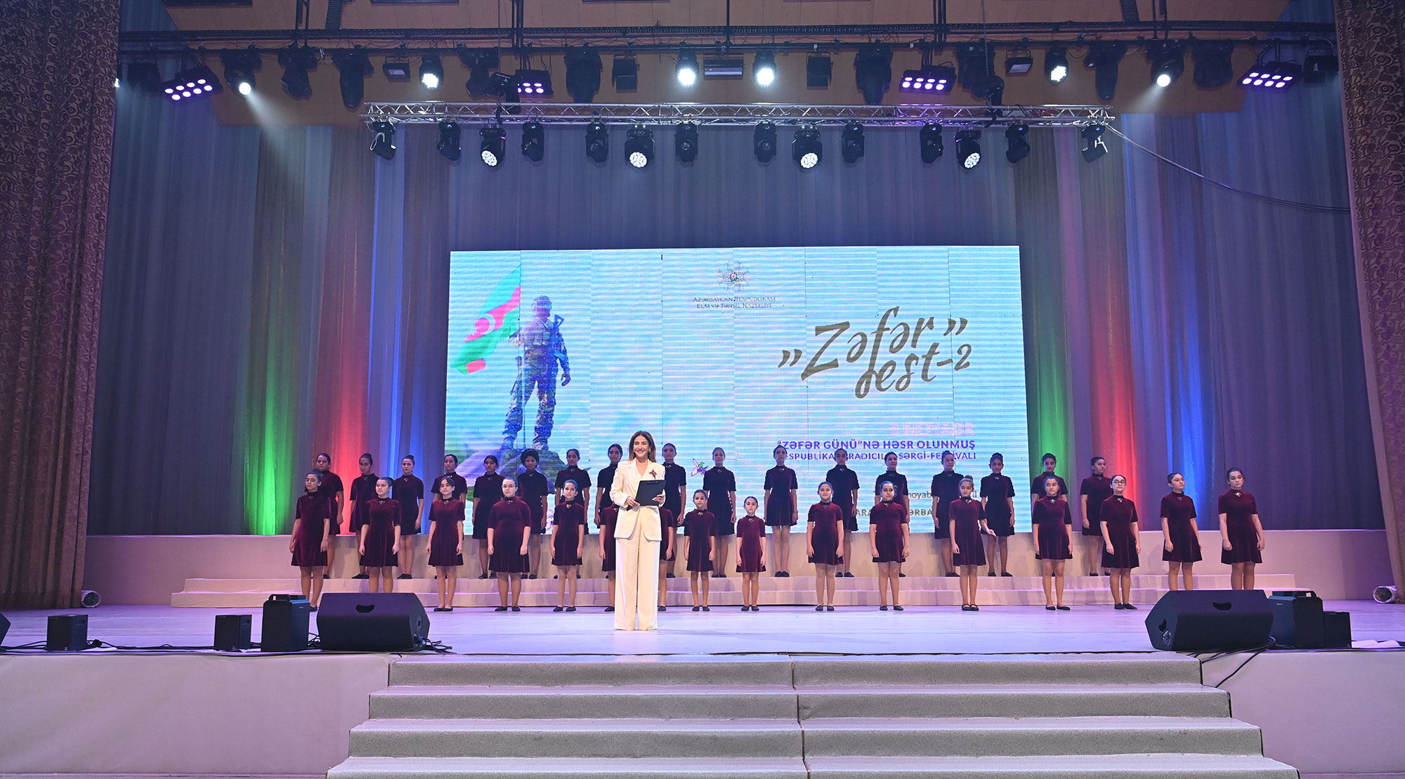 Bədii hissədə uşaq-gənclər inkişaf mərkəzlərinin bədii özfəaliyyət kollektivləri, Azərbaycan Milli Konservatoriyası tərkibində İncəsənət gimnaziyası, Cövdət Hacıyev adına 3 nömrəli onbirillik musiqi məktəbinin kollektivi olmaqla ümumilikdə 300-dən çox məktəblinin iştirakı ilə böyük səhnədə Zəfər Gününə həsr olunmuş ədəbi-bədii kompozisiyalar nümayiş olunub, məktəblilərin ifasında vətənpərvərlik mövzusunda şeir və mahnılar səslənib.