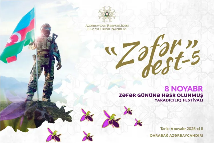 Noyabrın 6-da Elm və Təhsil Nazirliyinin təşkilatçılığı ilə Heydər Əliyev Sarayında Vətən müharibəsinin 5-ci ildönümünə həsr olunmuş “ZəfərFest-5” yaradıcılıq festivalı keçiriləcək.